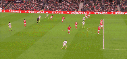 在稳住后防的情况下,诺丁汉森林在第7分钟,创造出了两支球队在上半场最有威胁的一次进攻,奥多伊左路摆脱防守球员后,直接45°传中,可惜门前和后点包抄的队友,都没有能够碰到皮球,错失取得梦幻开局的绝佳机会。