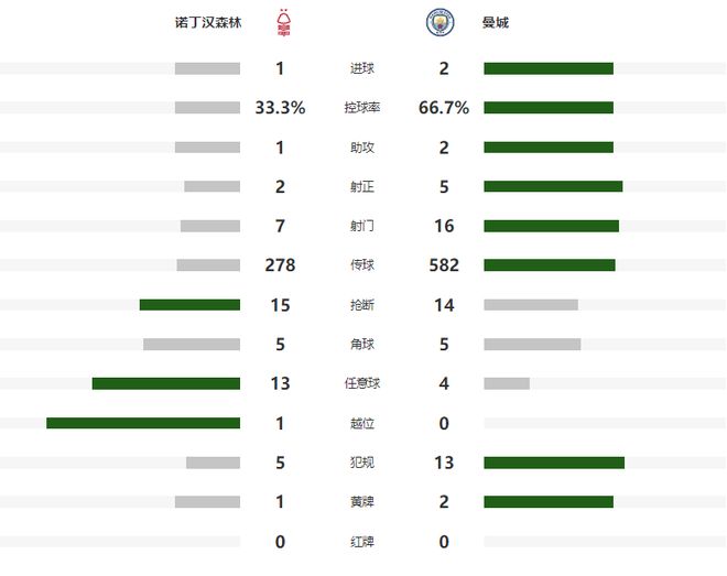 尽管是主场作战,但诺丁汉森林并没有冒进,而是采取了更加实用的防守反击策略,一上来就在本方半场摆大巴,挤压蓝月军团的进攻空间,此举也取得了预期的效果,前45分钟曼城虽然控球率遥遥领先,超过了60%,但是只完成了6脚打门,还全部偏出,这也是他们在25年首次上半场0射正。