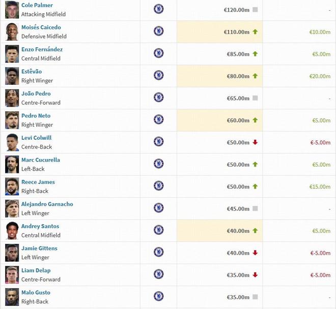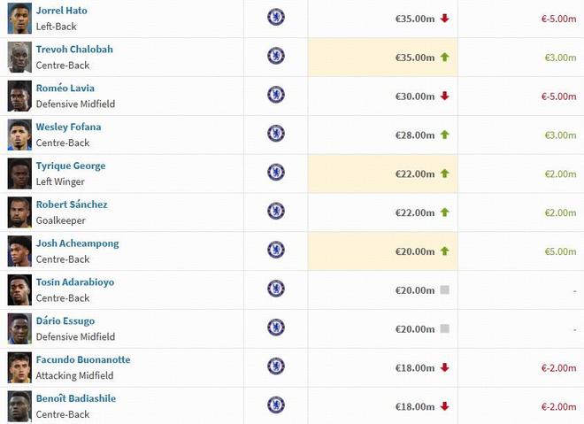北京时间12月9日,德转公布了最新一期英超球员身价,切尔西这边,埃斯特旺上涨2000万欧,德拉普等球员下跌500万欧。
